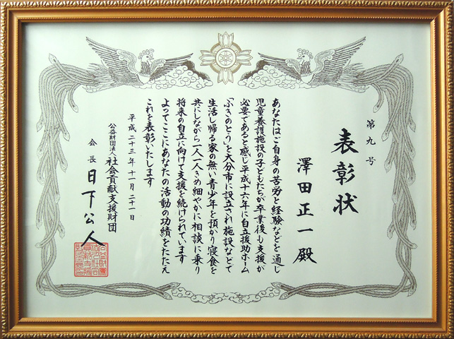 平成23年11月21日、社会貢献支援財団より表彰されました。